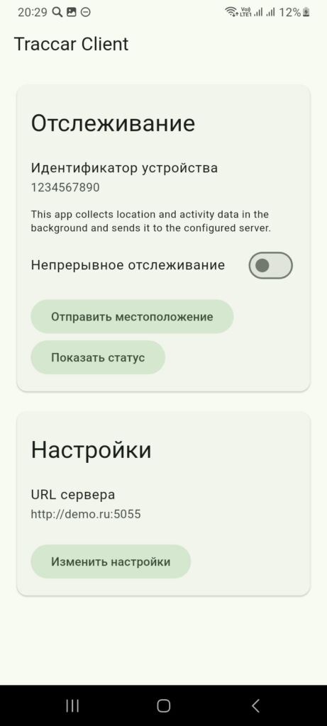 После подключения услуги, мы предоставим вам ссылку для отслеживания, URL-адрес сервера и идентификатор устройства. Последние два параметра будет необходимо внести в приложение. Установите на смартфон приложение, которое будет отправлять ваши координаты. Дайте приложению разрешение на геолокацию и работу в фоновом режиме.